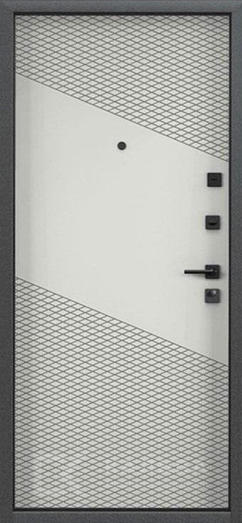 Фото «Входная дверь для квартиры белая диагональ сетка внутри орех снаружи №300»